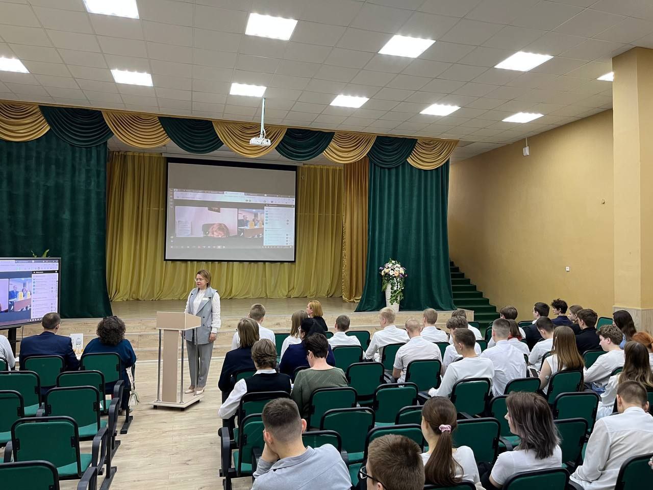 С приветственным словом выступила Белова С.Н., д.п.н., профессор кафедры ПиПО, руководитель НМЦ сопровождения педагогических работников Курского государственного университета. Она отметила важность проведения мероприятий, направленных на профориентацию, на обмен опытом работы с проектами между учителями Курской и Орловской областей.