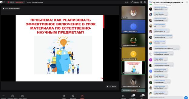 В КГУ 25.09.2025 г. кафедра алгебры, геометрии и теории обучения математике совместно с научно-методическим центром г Курска в режиме видеоконференции провела сетевой межрегиональный методический круглый стол по теме ««МЕЖПРЕДМЕТНЫЕ СВЯЗИ МАТЕМАТИКИ И ЕСТЕСТВЕННО-НАУЧНЫХ ПРЕДМЕТОВ В ШКОЛЕ».