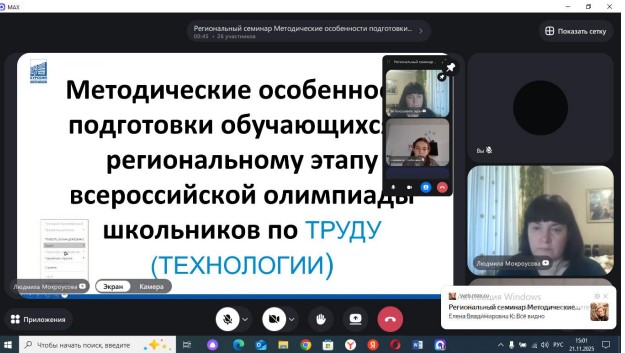 21 ноября 2025 года согласно плану деятельности научно-методического центра сопровождения педагогических работников (утв. протоколом заседания Комиссии Министерства просвещения Российской Федерации по отбору образовательных организаций высшего образования для создания на их базе научно-методических центров сопровождения педагогических работников № 2 от 25 ноября 2021 г) для учителей Труда (технологии) на Индустриально-педагогическом факультете состоялся региональный семинар (в режиме ВКС) «Методические особенности подготовки обучающихся к региональному этапу всероссийской олимпиады школьников по труду (технологии)».
