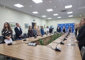 По традиции звуки студенческого гимна «Gaudeamus» в исполнении смешанного хора Курского государственного университета под руководством доцента кафедры музыкального образования и исполнительства КГУ Людмилы Николаевны Антонченко оповестили о начале мероприятия.